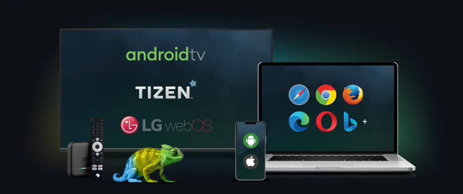 • KameleonTV to intuicyjna i wygodna aplikacja, która umożliwia Ci odbiór usługi telewizji internetowej przy wykorzystaniu dekodera z Android TV, na telewizorach typu Smart TV oraz na urządzeniach mobilnych z systemem Android lub iOS.